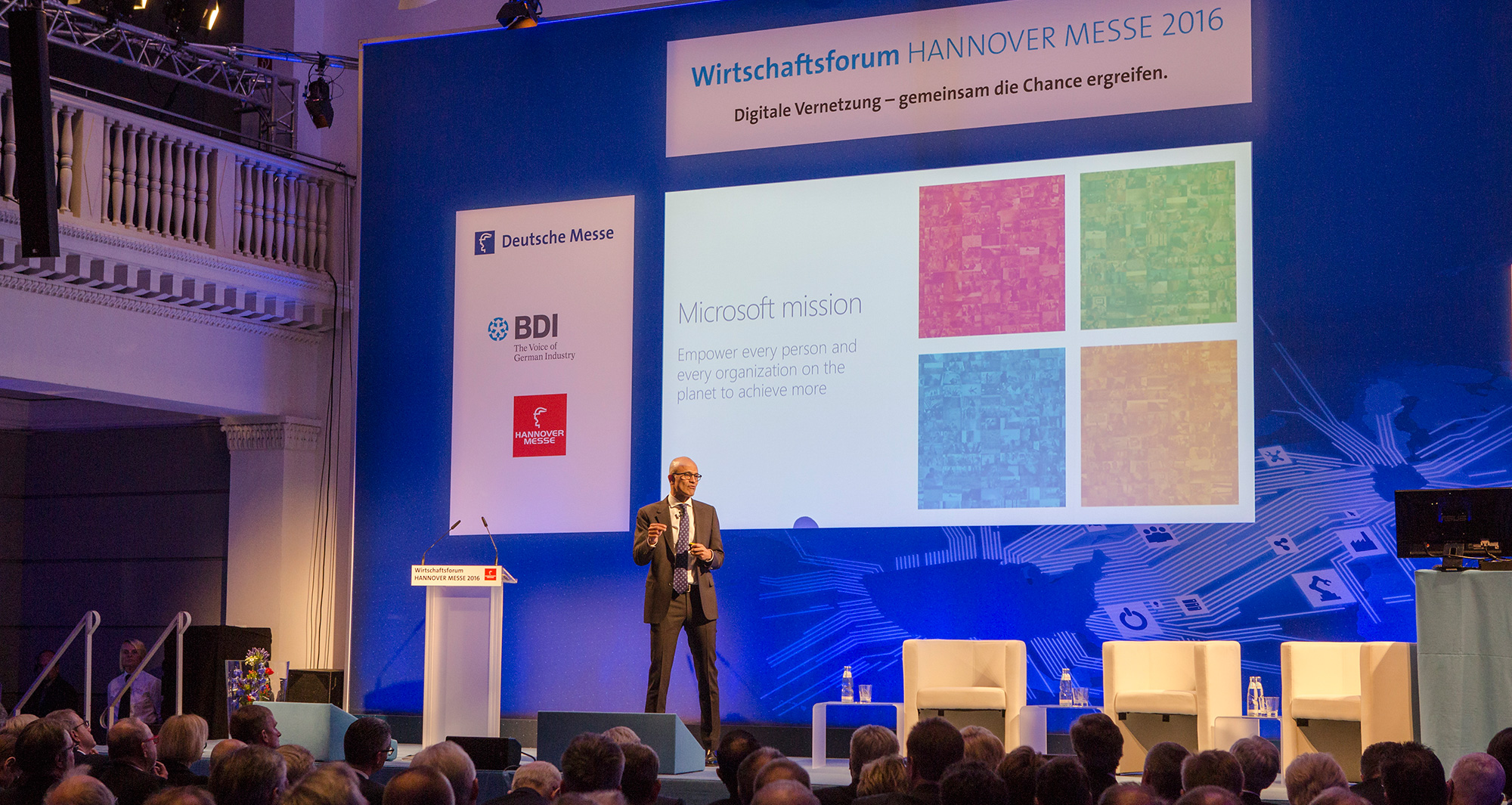 A digital transformation is remaking companies and their factories, bringing the intersection of manufacturing and technology even closer, Microsoft CEO Satya Nadella said Sunday in his keynote address at Hannover Messe 2016, the world’s largest industrial technology fair, in Germany.